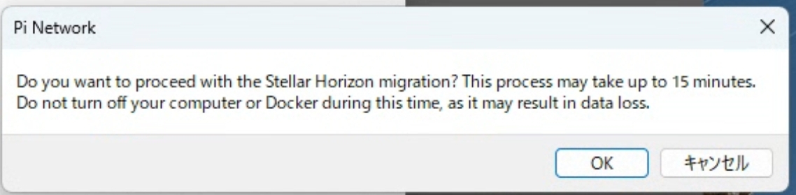 Horizonを開始するには、このプロセスが必要です。完了まで時間がかかる場合があるため、注意して進めてください。アップグレードを中断すると、データの消失や破損を招く恐れがあります
